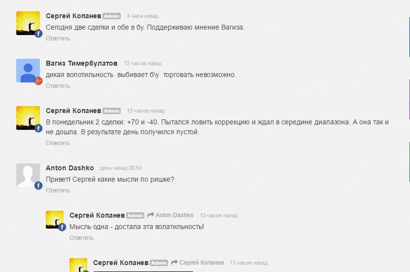 Фейсбук-страница Сергея Копанева «Трейдер-чат» явно мертва. Площадка также использовалась для перенаправления трафика на сайт инвестора. На момент обзора на страницу все еще подписано 44 человека. Отзывов о Копаневе или других комментариев не обнаружено.